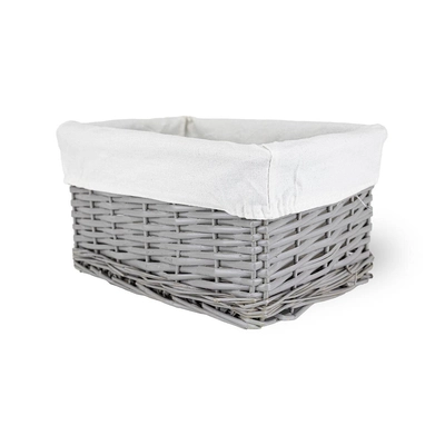 Koszyk wiklinowy Koszoplotka szary z wyściółką z kokardką 30x20x15h + GRATIS
